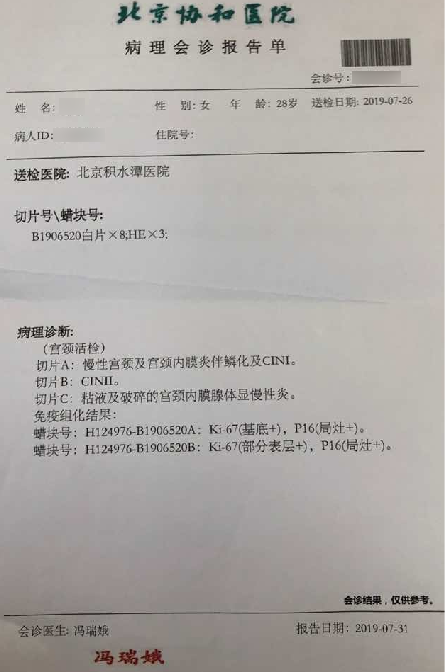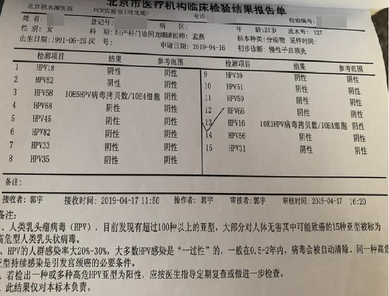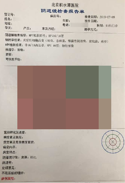 l已(yi)婚(hun)女性l2019年4月確診高危HPV16、58(+);2019年7月,病理診斷:宮頸(jing)3點、6點(dian)HSIL(CIN2級)伴鱗狀上(shang)皮化生(sheng); l2019年8月23日,用紅卡(ka)一個療程進行治療;治療前檢(jian)查(cha)報告(gao):HPV16、58陽(yang)性(xing)紅卡治療轉陰