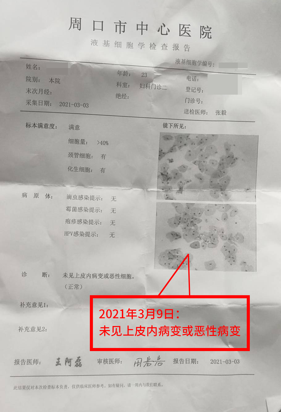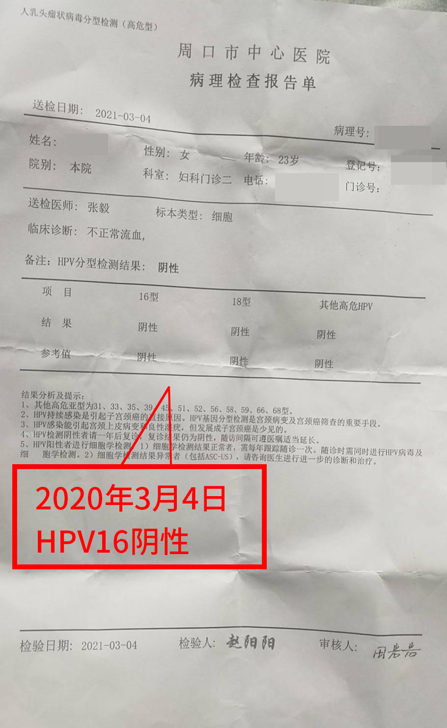 HPV16陽性、低級別鱗狀上皮內病變, 宮頸錐切術后聯合使用紅卡治療,復查HPV16陰性,TCT:未見上皮內病變或惡性病變