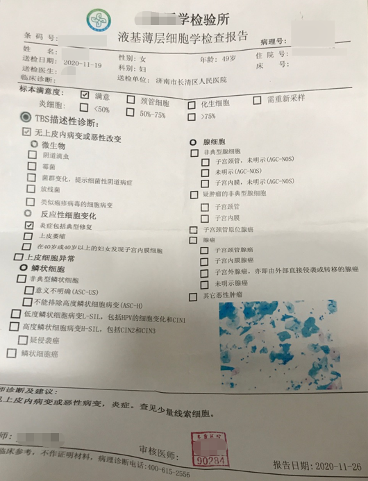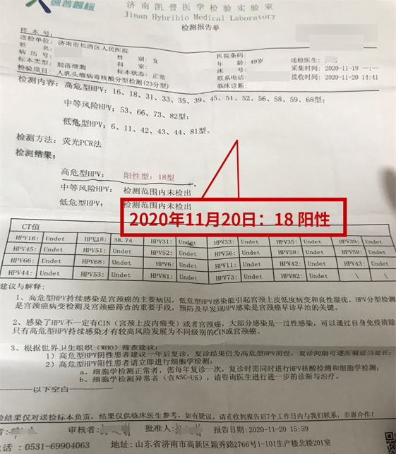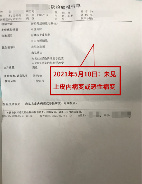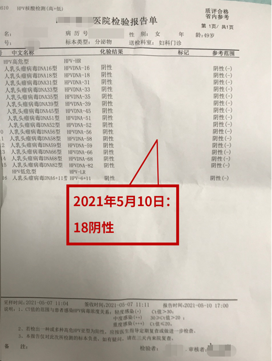 治(zhi)療后(hou)檢(jian)查報告如下:HPV轉(zhuan)陰 TCT無病變