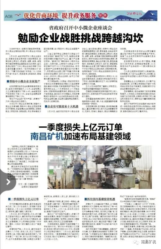 近日,南昌礦山機械有限公司(以下簡稱“南昌礦機”)總裁龔友良接受了江南都市報記者的采訪,并談到面對日益嚴峻的全球疫情,企業(yè)如何做到積極應對,并在當前的形勢之下迅速調整經營戰(zhàn)略,搶抓機遇。采訪報道中還提到,龔友良總裁認為“疫情只是公司發(fā)展過程中的一個插曲,未來南昌礦機還將從主機生產銷售,邁向系統(tǒng)集成總包及運營、備用備件生產銷售與主機生產為一體的全產業(yè)鏈運營,實現(xiàn)從制造業(yè)向制造服務業(yè)延伸的蛻變升級” 。