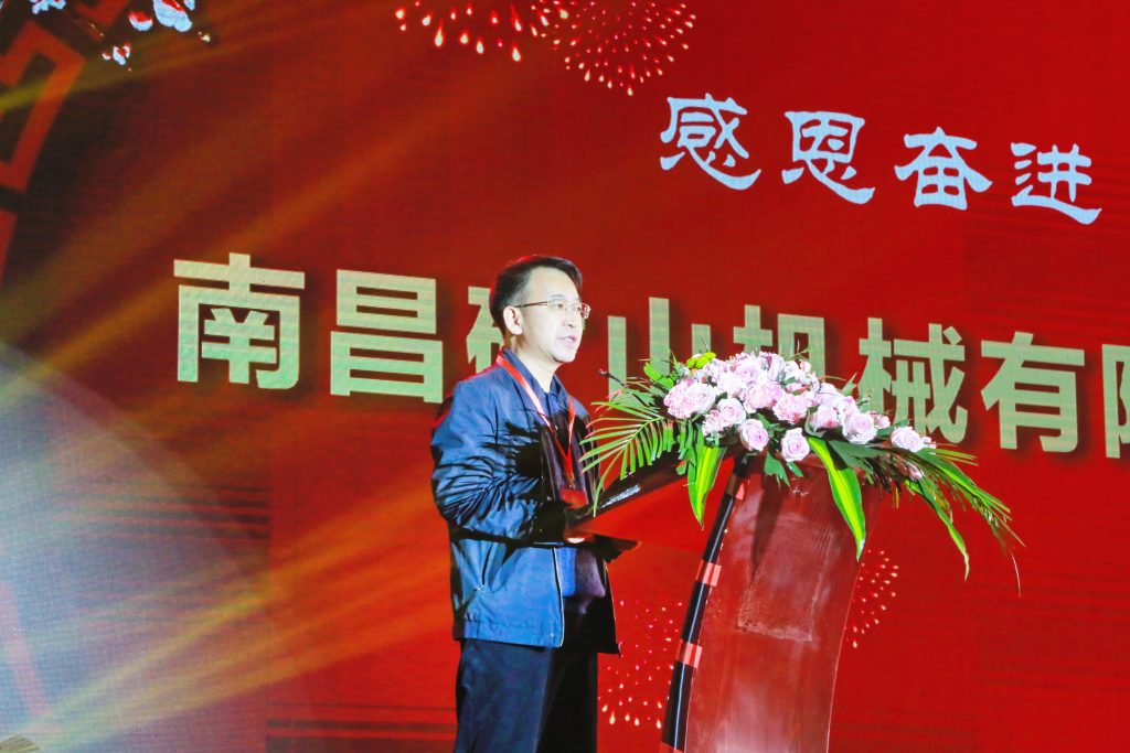 ? ? 南昌市委常委、南昌市人民政府常務(wù)副市長(zhǎng)楊文斌在慶典上致辭,他提到,南昌礦山機(jī)械有限公司經(jīng)過(guò)五十年的艱苦創(chuàng)業(yè),由原來(lái)的一個(gè)手工作坊發(fā)展成為擁有多項(xiàng)核心技術(shù)的大型現(xiàn)代化企業(yè)和行業(yè)龍頭企業(yè),產(chǎn)品遠(yuǎn)銷(xiāo)美國(guó)、俄羅斯、南非、巴基斯坦等60多個(gè)國(guó)家和地區(qū),近年來(lái)更是保持了年均兩位數(shù)的高速增長(zhǎng)。特別是今年,在新冠肺炎疫情的不利影響下,南昌礦機(jī)發(fā)展逆勢(shì)上揚(yáng),產(chǎn)銷(xiāo)額和納稅額均超過(guò)去年同期,并在疫情初期就向湖北省和南昌市紅十字會(huì)共計(jì)捐出100萬(wàn)元救助款項(xiàng),充分彰顯了企業(yè)的社會(huì)責(zé)任與擔(dān)當(dāng),獲得了“省內(nèi)防控新冠肺炎疫情突出貢獻(xiàn)企業(yè)”稱號(hào)。