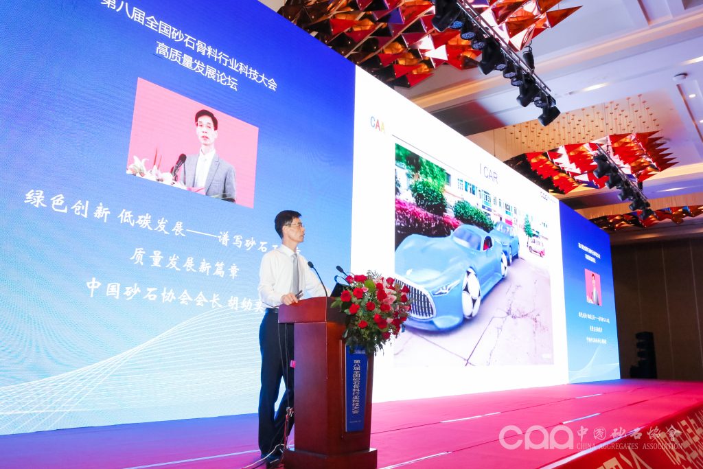 本次會議主題為“綠色創(chuàng)新 低碳發(fā)展”,中國砂石協(xié)會會長胡幼奕在“綠色創(chuàng)新、低碳發(fā)展”主題論壇上,發(fā)表了題為《綠色創(chuàng)新 低碳發(fā)展 譜寫砂石工業(yè)高質(zhì)量發(fā)展新篇章》的主旨演講。演講提到,當前砂石已成為我國具有競爭力的產(chǎn)業(yè)之一,并引領世界砂石工業(yè)的發(fā)展方向。進入“十四五”新發(fā)展階段,對砂石行業(yè)提出了新的發(fā)展要求:貫徹新發(fā)展理念,推動新的科技進步,構建新的發(fā)展格局。以綠色創(chuàng)新、低碳發(fā)展來統(tǒng)領砂石行業(yè)的高質(zhì)量發(fā)展,打造新的產(chǎn)業(yè)格局,形成供需平衡,構建安全的供應鏈和綠色低碳繁榮的生態(tài)圈,努力構建山水林田湖草沙生命共同體,積極踐行習總書記“兩山”理論,共同譜寫砂石工業(yè)高質(zhì)量發(fā)展新篇章!