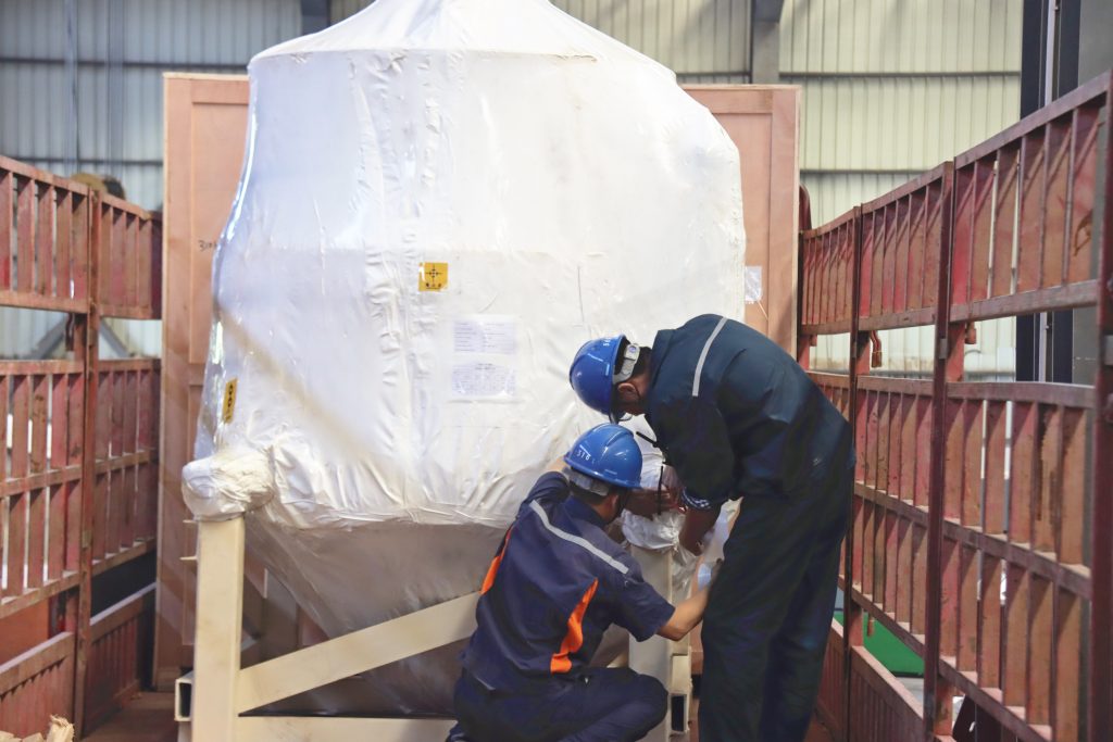南昌礦機工作人員正打包設(shè)備并裝車