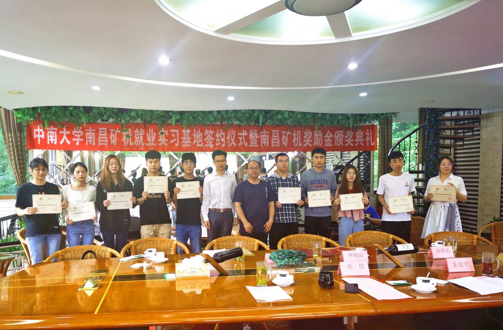 中南大學(xué)南昌礦機卓越獎學(xué)金獲得者頒獎合影