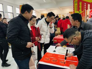 集市現(xiàn)場遍布中國紅,濃濃的年味撲面而來?!跋灿T”攤位前,書法老師現(xiàn)場揮毫潑墨,一副副飽含祝福與喜慶的對聯(lián)躍然紙上,一個個金色的“福”字充滿美好的寓意,大家領(lǐng)到了自己中意的春聯(lián),喜笑顏開;“飾飾如意”、“欣欣向絨”攤位備受喜愛,大家對精心準(zhǔn)備的禮品愛不釋手;“吃貨”們則被“幸福味道”攤位吸引,極具江西特色的特產(chǎn)小吃極受歡迎;“編福送財”攤位上,南礦才華滿溢的員工正根據(jù)需求飛快編織手工藝品;“快樂套圈圈”、“拾光”、“福滿窗”等攤位也人氣十足,在歡快的歌聲中,四處洋溢著歡樂和喜悅,其樂融融。