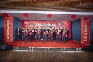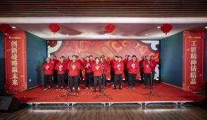 年會上,還與仍在外出差無法到場和堅守海外的員工們進(jìn)行了現(xiàn)場連線,為其送上節(jié)日的祝福,并邀請常年駐守海外的員工及其家屬上臺,分享心路歷程。