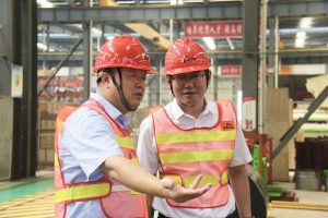 龔友良總裁向龐帥主任介紹車(chē)間情況